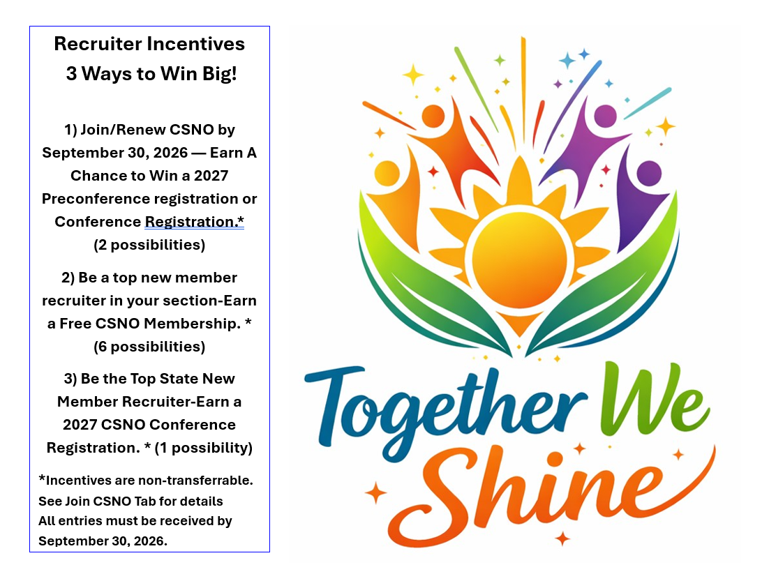 It's that time of year where we are excited to announce the launch of the CSNO California School Health Services Survey. We were impressed by the increase in school nurse participation last year! We hope to see greater impact this year. School Nurses that participate and complete the survey will be entered into a chance to win a free CSNO Conference registration, which will be held at the Mission Inn and Riverside Convention Center Feb 12-14, 2027! Data must be entered by June 30th 2026 to be eligible for conference drawing.